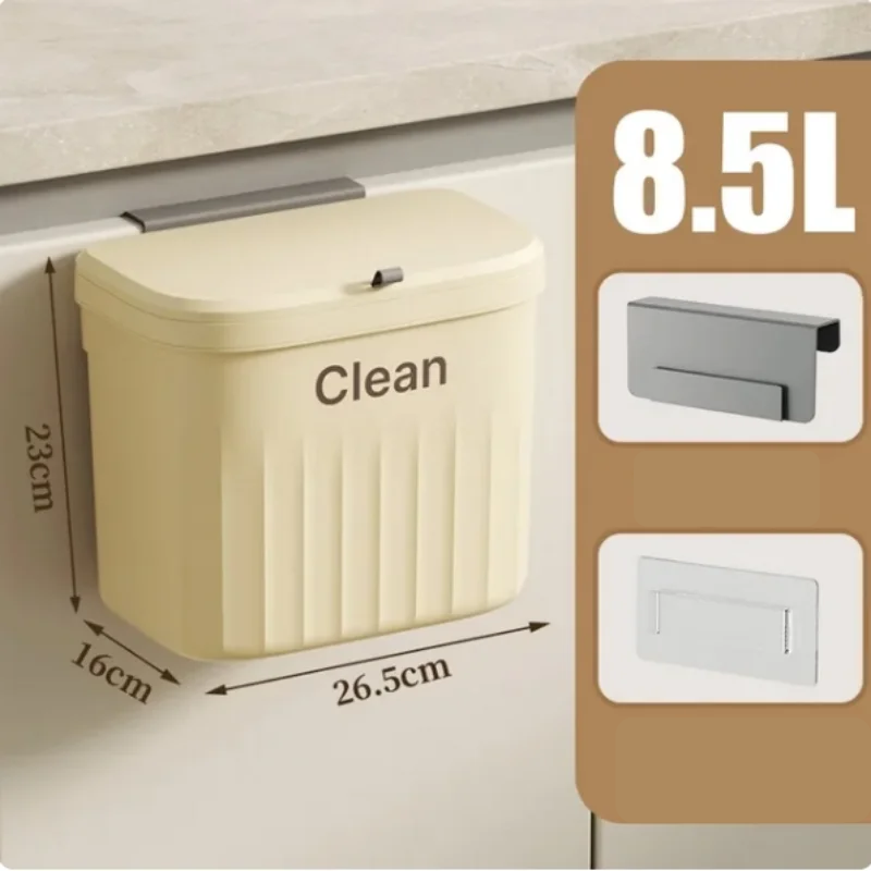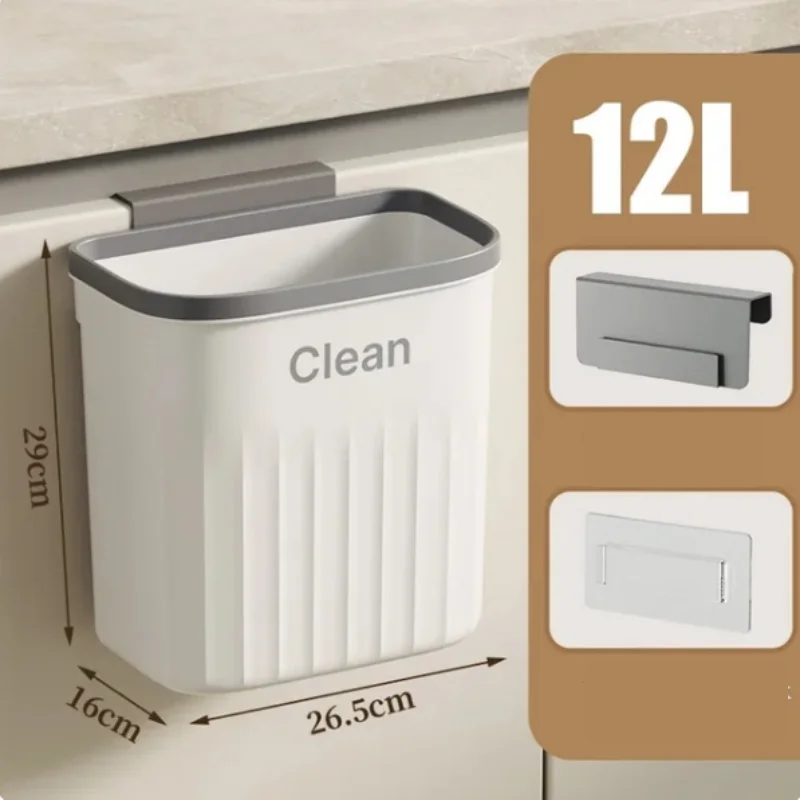 Essa lixeira está disponível nas capacidades de 8,5 L e 12 L. O modelo de 8,5 L mede 26,5 x 16 x 23 cm e o de 12 L mede 26,5 x 16 x 29 cm. A instalação pode ser feita pendurando na porta do armário compatível com espessura de até 2,5 cm, fixando em superfícies lisas e secas com ganchos ou tiras adesivas, ou simplesmente apoiando na bancada. O uso é recomendado para a cozinha, a área sob a pia, a despensa, as portas de armário, o banheiro, o escritório e até o carro, oferecendo versatilidade onde você precisar. 🔧